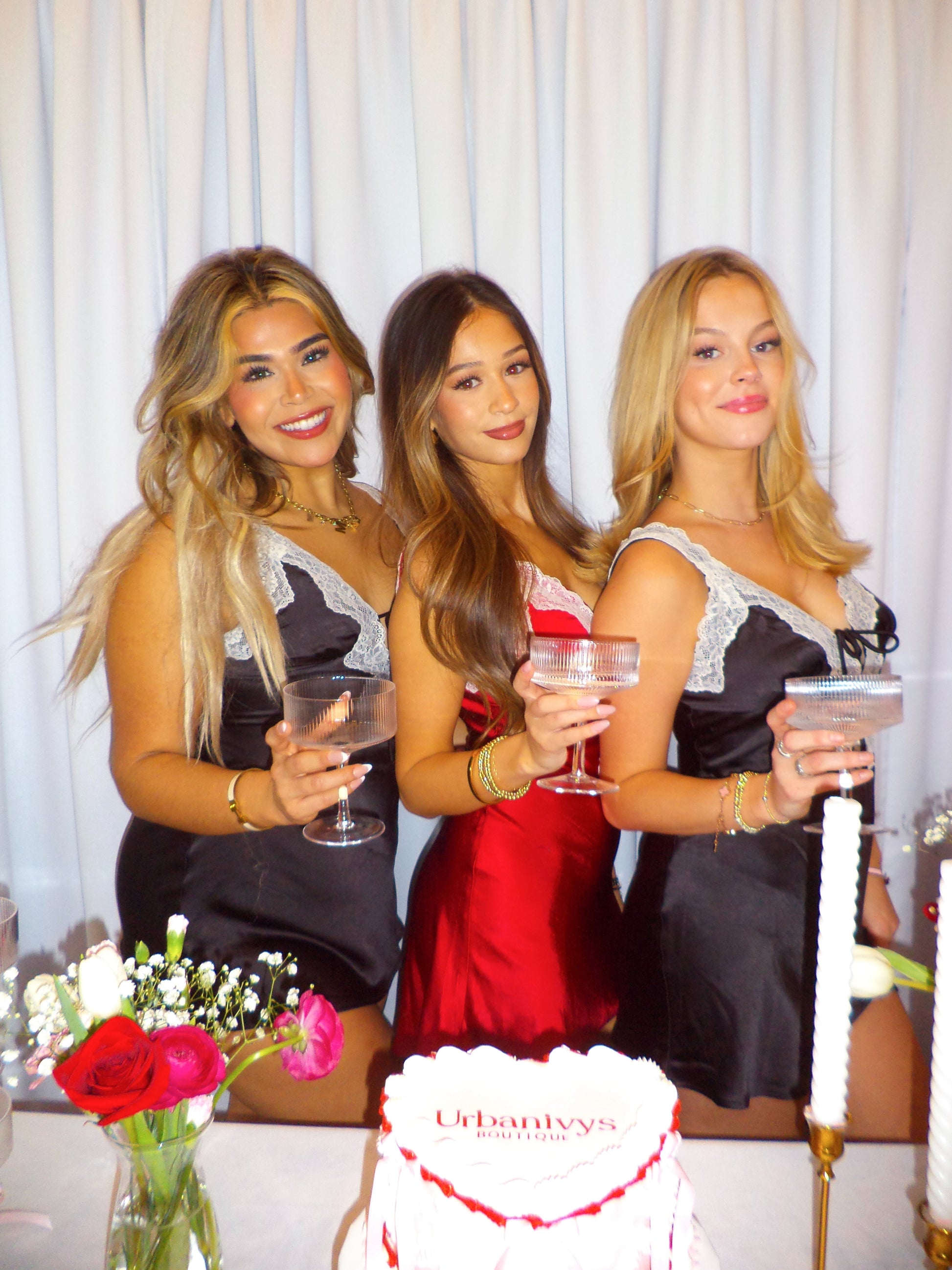Valentina Satin Lace Mini Dress Noir